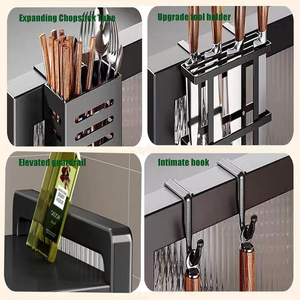 الملحقات الجانبية: يأتي الرف مع العديد من الملحقات لحمل جميع مستلزمات المطبخ الخاصة بك: