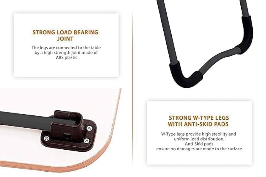 أرجل مانعة للانزلاق: تم تصميم الأرجل بمميزات مانعة للانزلاق لضمان بقاء الطاولة مستقرة على الأسطح المختلفة، بما في ذلك السرير أو الأريكة.