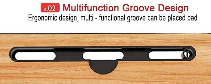 حامل مدمج: أخدود طويل مسنن على سطح الطاولة يعمل كحامل لجهازك اللوحي أو الهاتف الذكي، ويحمله في وضع مستقيم لسهولة المشاهدة.