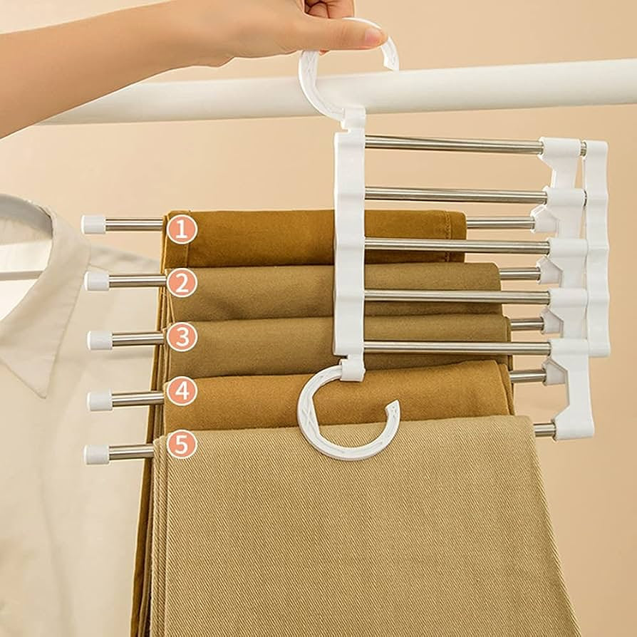 - قضيب قابل للتعديل: يمكن سحب قضيب علاقة البنطلون بمرونة، مما يُسهّل عليك ارتداء بنطلونك وخلعه. تصميمه المفتوح يُسهّل إخراج ملابسك من الخزانة دون الحاجة إلى إزالة الشماعات.
