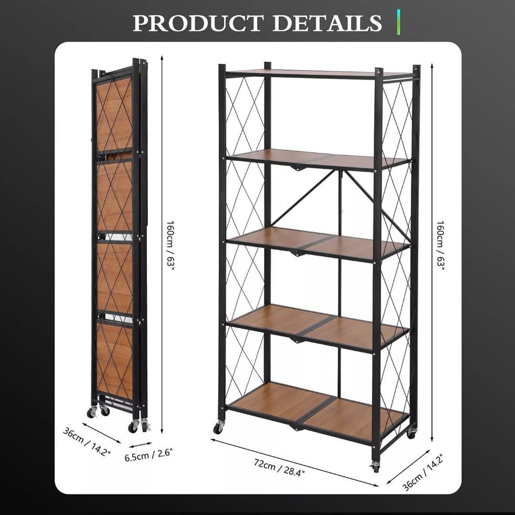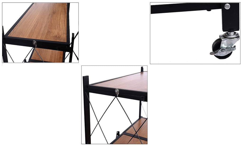رف تخزين قابل للطي بأربع طبقات مُجمّع مسبقًا، يكفي أربع خطوات فقط لتحصل على رف مُنظّم. أخرج العجلات من صندوق الملحقات وركّبها أسفل الرف. اسحب الرف، وضع الطبقة العلوية، وثبّته بزر جانبي. استخدم المشبك الأوسط لزيادة الثبات.