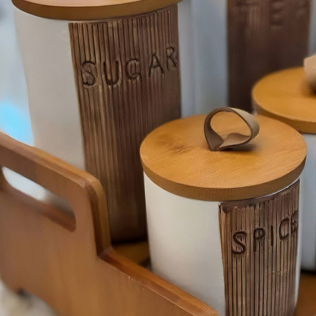 Premium Materials: Made from durable, food-grade ceramic and complemented by a sturdy wooden stand and lids, this set is built to last and easy to maintain.