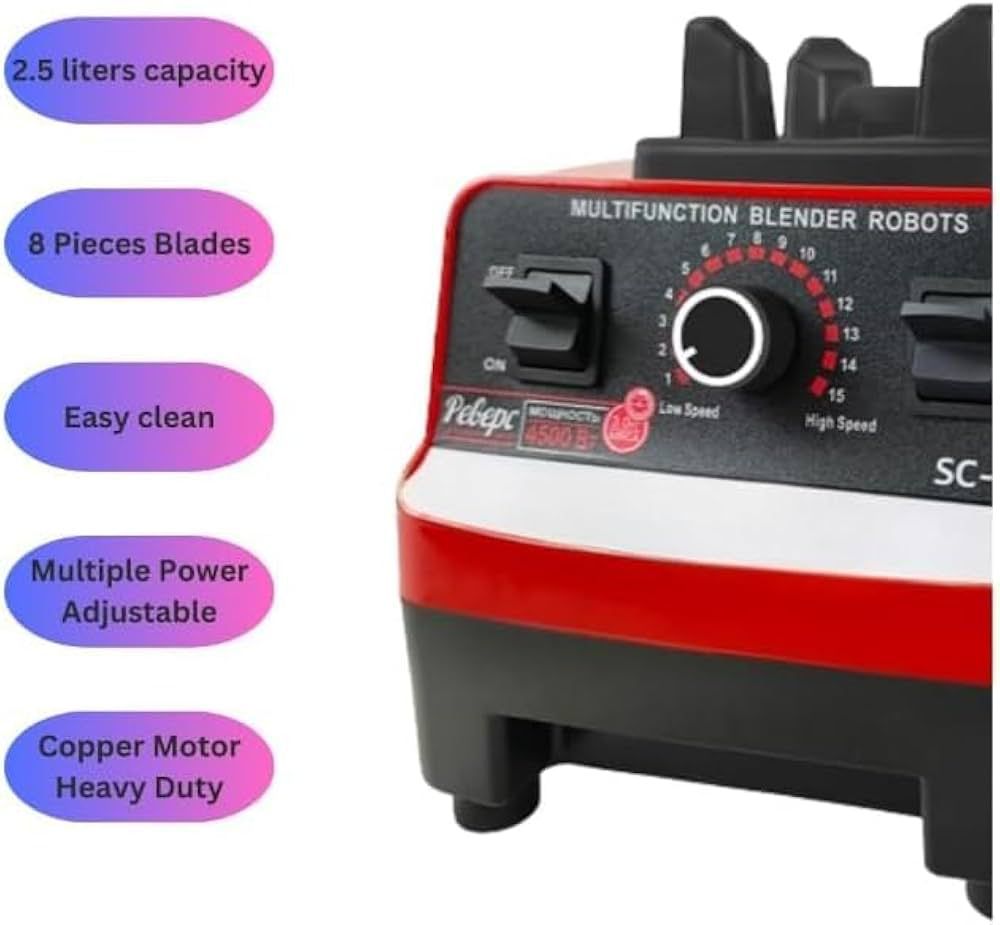 - Powerful Blender. With 4500W powerful motor and 6 ultra-sharp stainless steel bs, it can easily crush ice and breakdown any hard ingredient