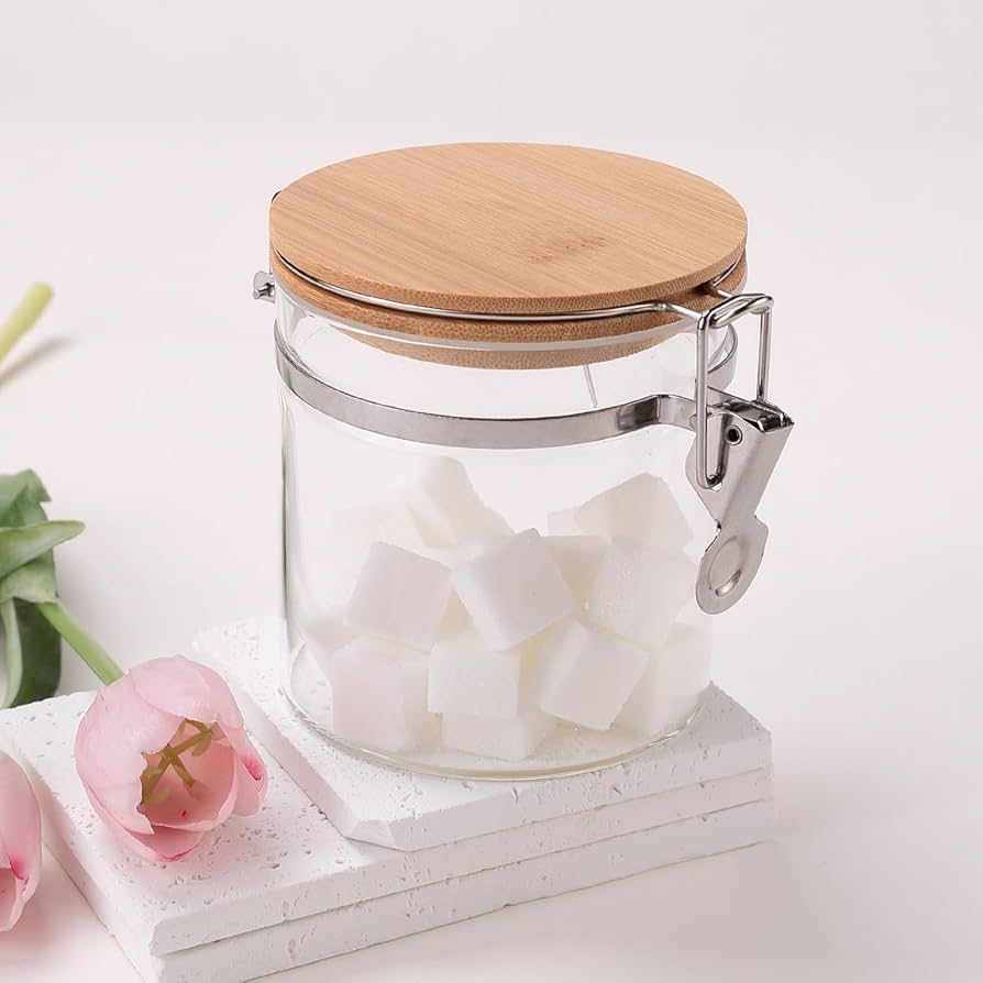 Elegant & Versatile Design: The transparent glass and minimalist bamboo lid offer a clean, modern aesthetic that complements any kitchen decor. Perfect for storing dry goods like coffee, tea, sugar, spices, snacks, and more.