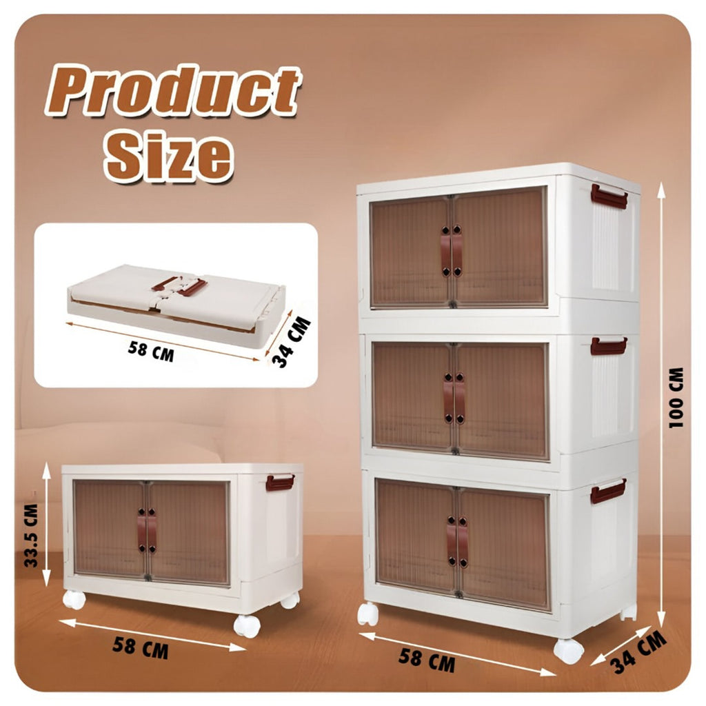 Foldable & Portable: This cabinet arrives flat and can be easily assembled in minutes by unfolding the sides and locking them into place. Its lightweight design and built-in handles make it easy to move, and it can be folded back down for convenient storage when not in use.