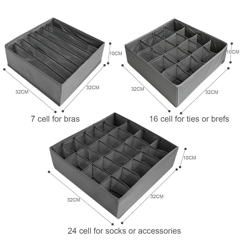 - 2. Varies in size and flexible: the 3-piece storage space meets different organization needs, we carry 7 cells for bras, 16 cells for ties or pants, 24 cells for socks or other accessories. In fact, you can use these boxes to store everything you love!