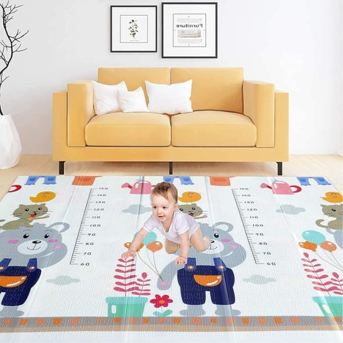 - 【FOLDABLE & REVERSIBLE PLAYMAT】💕 The folding playmat is convenient to store thanks to its foldable design, you can also turn it to family size easily. The baby foam mat has double sides patterns with colorful and cute cartoon animals, which can stimulate the baby's real vision growth, intellectual growth.